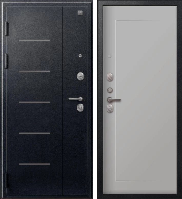 Надежная входная Дверь V-03 Черный муар - Кашемир сильвер премиум класса по цене 40 111 руб. Большая толщина стали защитит от проникновения в ваш дом, квартиру или коттедж. Используется очень качественная фурнитура: замки, цилиндры, ручки, защелки. Покрытие и отделка двери изготовлено под внимательным контролем производителя. Дверь имеет долгий срок службы и гарантию.